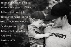 It's human nature to want to do what you are told you can't. It's ambitious to try what you think you shouldn't. Resisting the norm is at the core of every red blooded individual who strives for more. The world is flat... you can't sail around it... You're too small... you can't compete at that level. I'm scared of failing... I'm going to put myself out there anyway.... The SAYiWON'T® Creed is rooted in human endeavor. Whatever I put my mind and heart to, I will achieve - and there's nothing the doubters, my environment, or the elements can do about it.